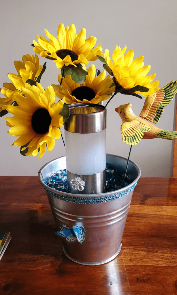 - Metal tub with “Flowers & Garden” label (Dollar Tree)